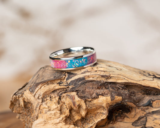 Trans Pride Ring Size 7 or 8- 8mm Stainless Steel, Opal, LGBT, Handmade, Pink, White, Blue, Custom, Transgender
