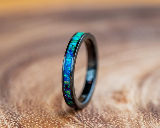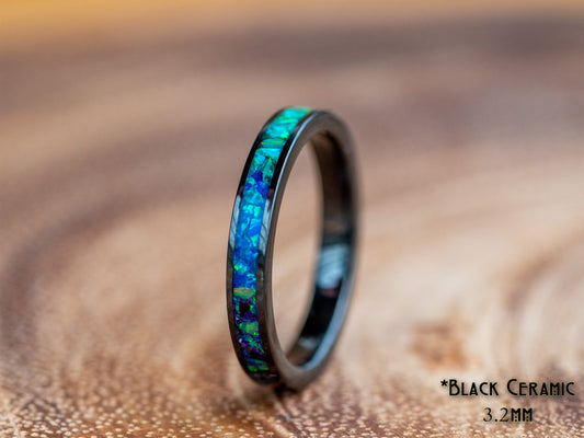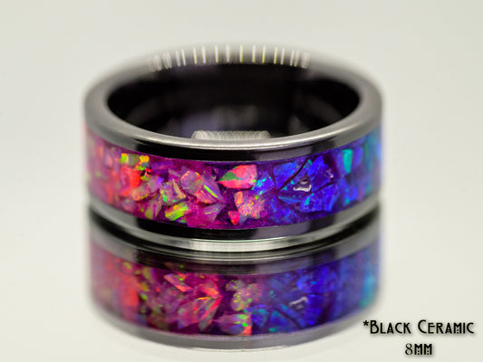 Rainbow Pride Flag 3.2mm Black Ceramic Opal Ring Size 7.5 - Handmade, LGBTQIA+, Red, Orange, Yellow, Green, Blue, Purple