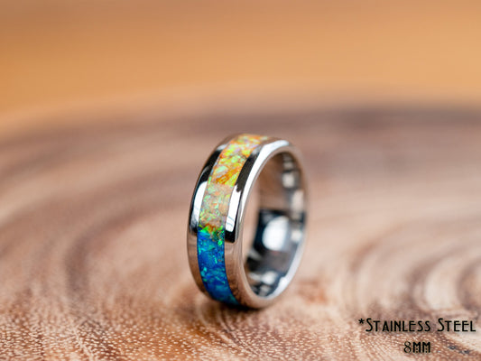 Rainbow Pride Ring Size 7 or 7.5 - 8mm Stainless Steel, Opal, LGBT Handmade, Steel, Red, Yellow, Orange, Green, Purple, Blue