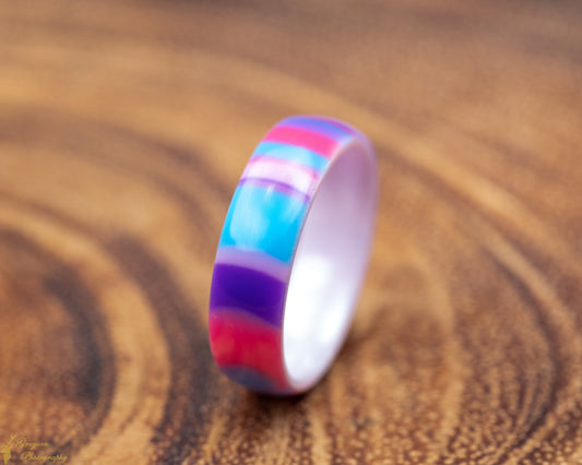 Everlasting Gobstopper Ring 6mm Pink Ceramic + Acrylic Size 7- Handmade, Pink, Purple, Blue