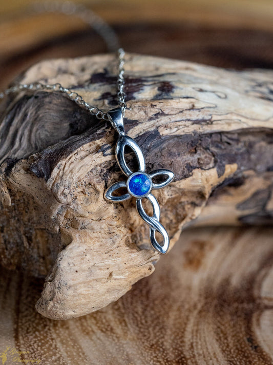 Celtic Cross Opal Pendant Necklace - Handmade Sterling Silver Jewellery for Communion or Wedding Gift