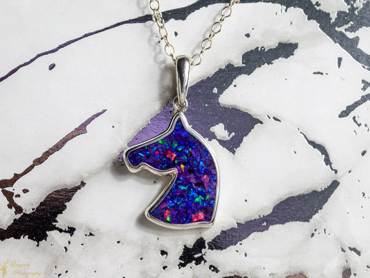 Handmade Horse Pendant Necklace Sterling Silver & Opal - Memorial Gemstone Jewellery